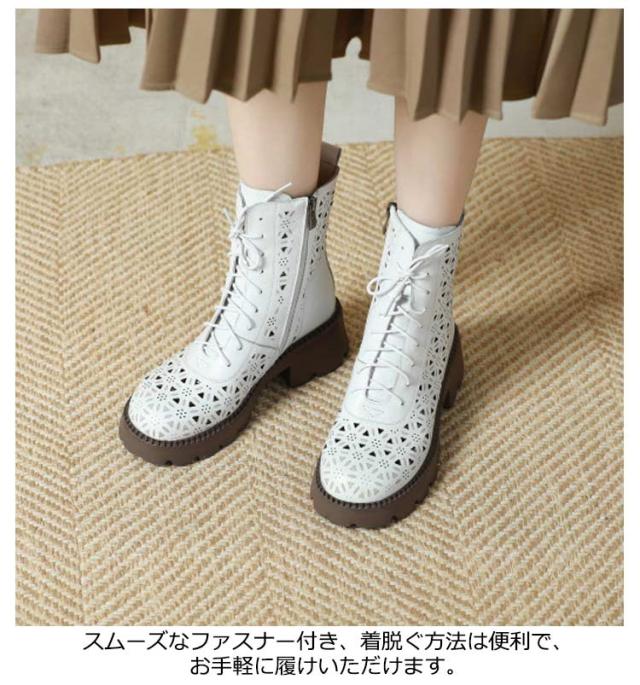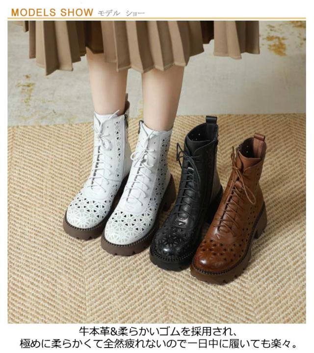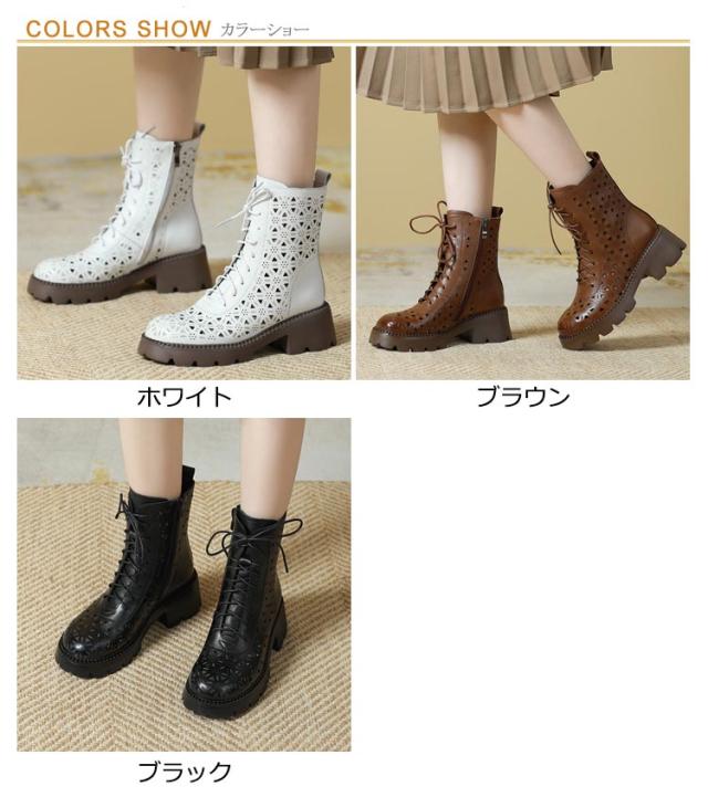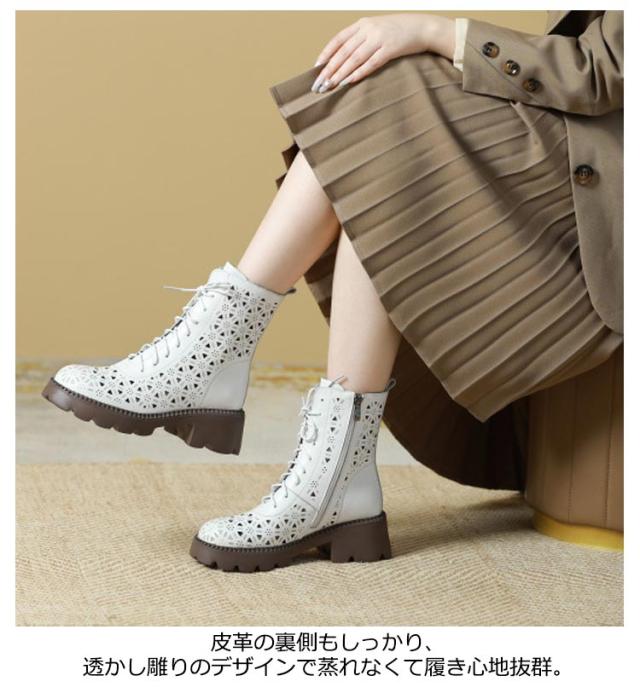 ブーティ レザーブーツ サマーブーツ 牛本革素材 母の日 母 透かし ブーツサンダル レディース 太ヒール 高級感 サンダル 春 ブーツ ブーツ サマーブーツ 通気性 夏 本革 ブーサン 蒸れない 卒業式 入学式 疲れない 革 黒 ブラウン 安定感 白 黒