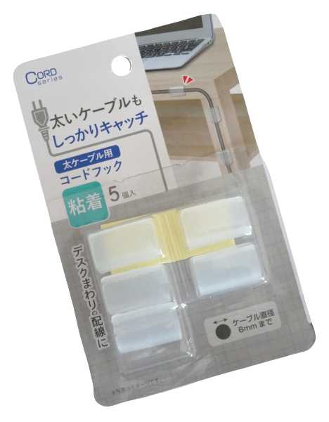 配線コードフック 太ケーブル用 粘着タイプ 5個入 (100円ショップ 100円均一 100均一 100均)