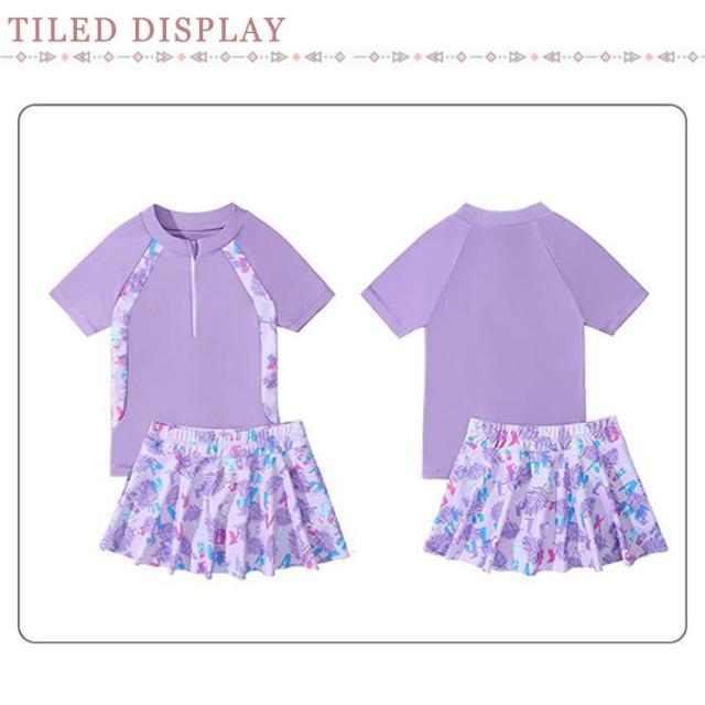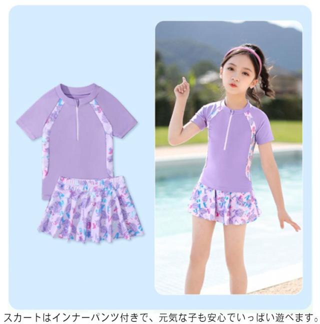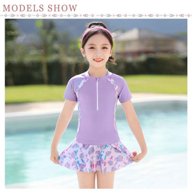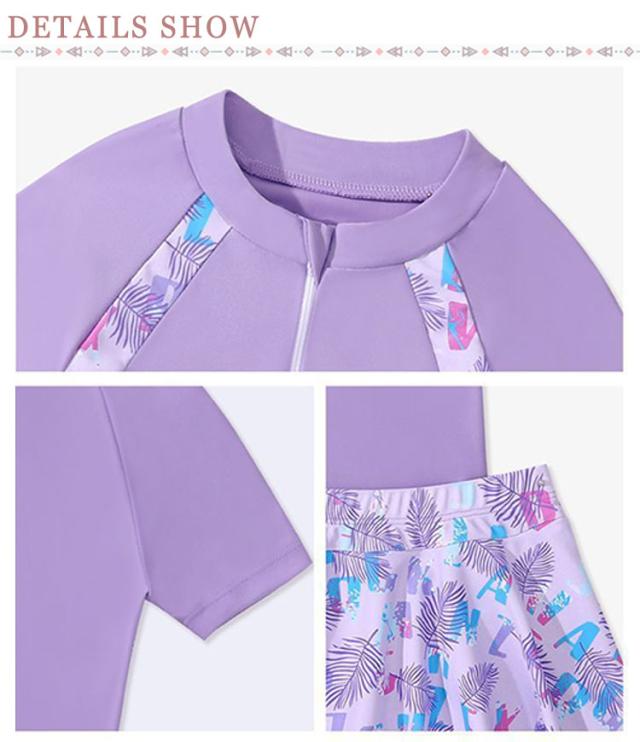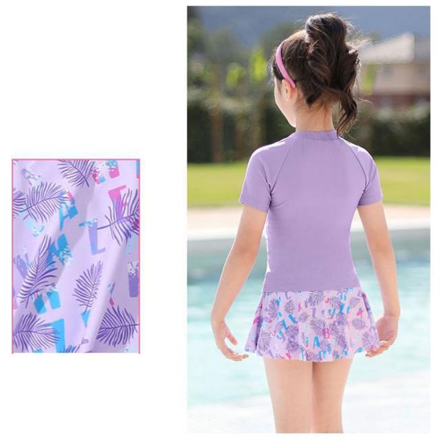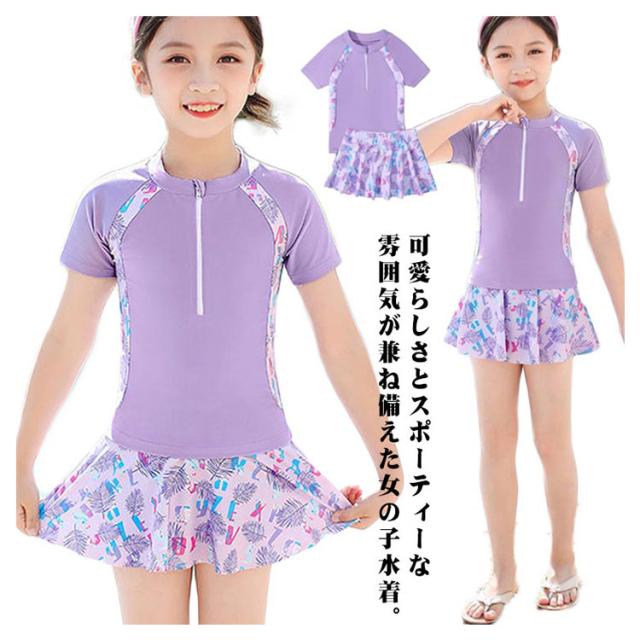 スイムウェア 女の子 セパレート トップス+スカート 水着 半袖 キッズ 海の キッズ水着 小学生 インナーパンツ付き 子供 みずぎ キッズ水着 ジュニア 中学生 プール 幼稚園 リゾート 可愛い ボタニカル 100 110 120 130 140