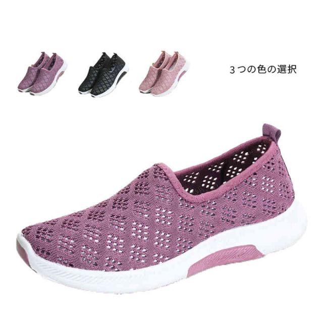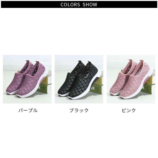 運動靴 スポーツシューズ スリッポン レディース スニーカー 靴 軽量 軽い メッシュシューズ ウォキングシューズ ナースシューズ 紐なし 看護師 着脱簡単 履きやすい 中高齢者靴 カジュアル おしゃれ ぺたんこ 走れる 送料無料 おでかけ