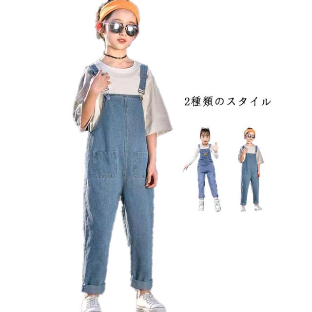 キッズ デニムサロペット オーバーオール オールインワン ロングパンツ 女の子 男の子 子供服 ベビーサロペット 長ズボン デニム ボトムス ベビー 通学 通園 春 夏 秋 シンプル 無地 ゆったり 送料無料 おでかけ おしゃれ かわいい