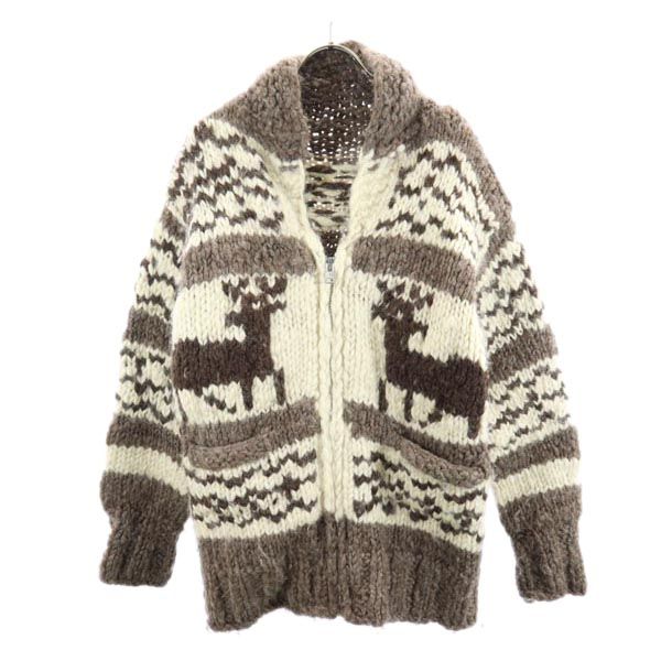 ヴィンテージ 80s カナダ製 ヴィンテージ ウール カウチンジャケット ブラウン系 VINTAGE ニット メンズ