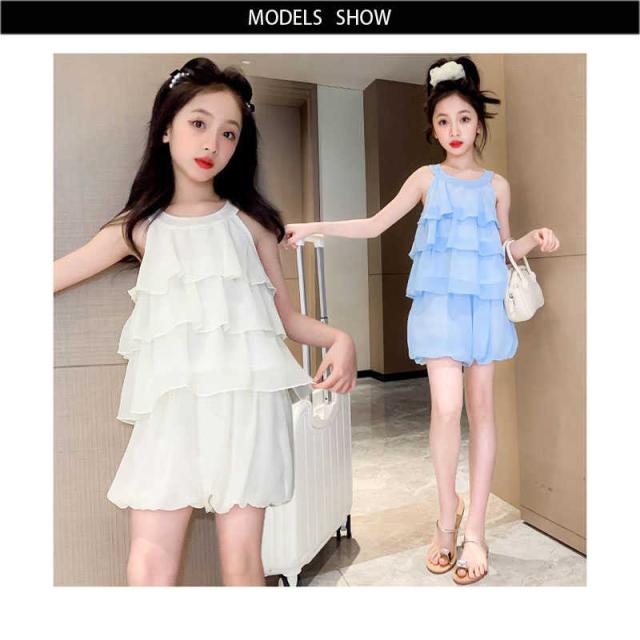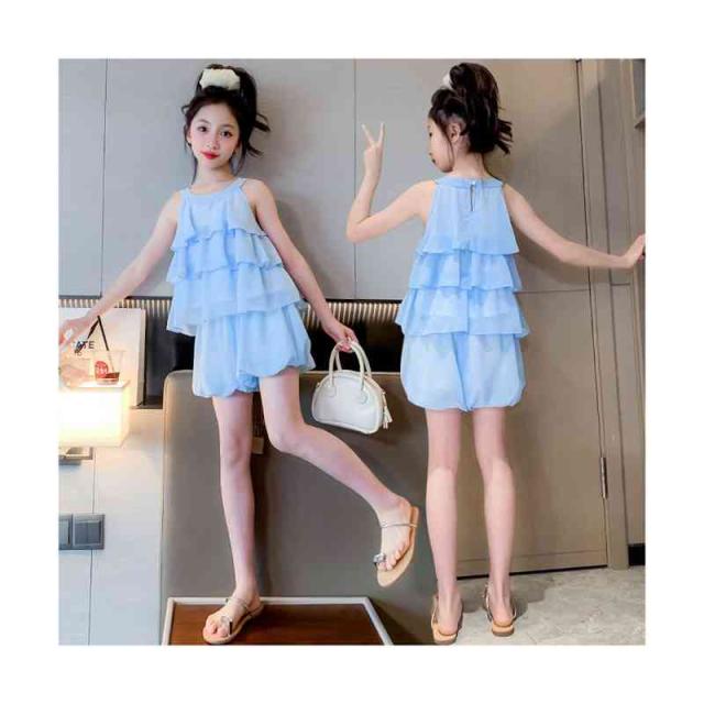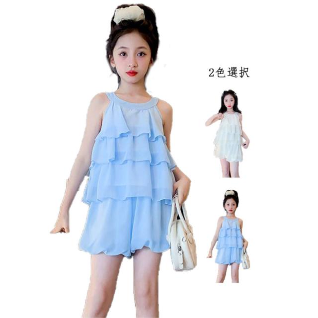 二点セット キャミソール+ショートパンツ プリーツブラウス プルオーバー フリルブラウス ミニパンツ フリル おしゃれパンツセット セットアップ カジュアルパンツセット おでかけ 女の子 子供服 無地 シンプル カジュアル おしゃれ フォーマル 送料無料
