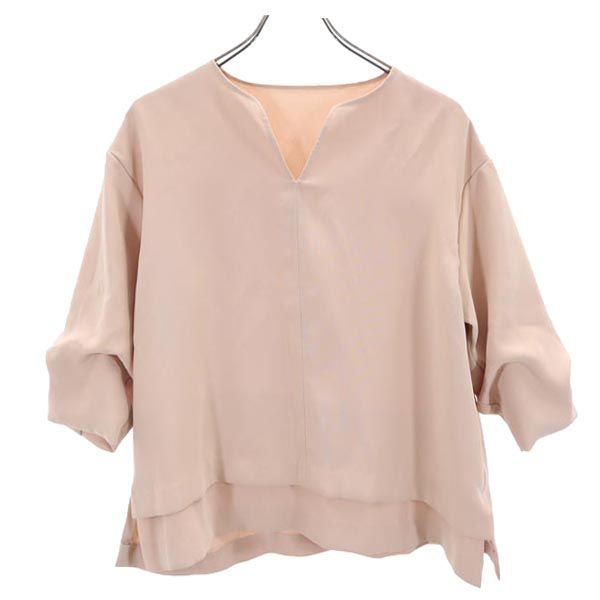 ユナイテッドトウキョウ 日本製 7分袖 Vネック タック ブラウス 1 ベージュ系 UNITED TOKYO レディース