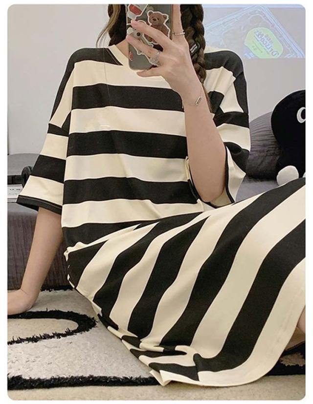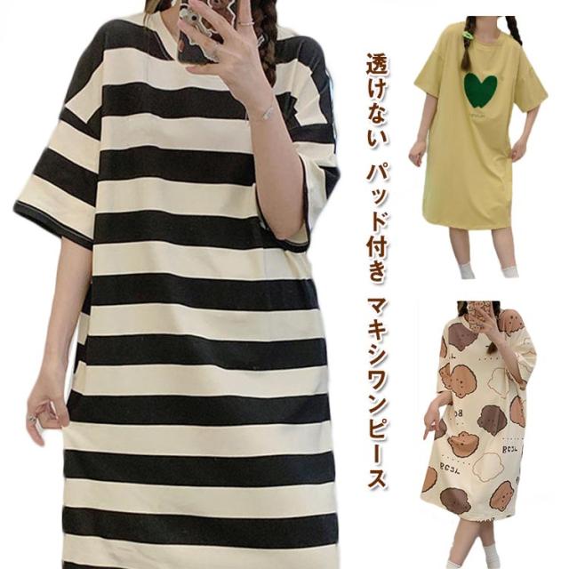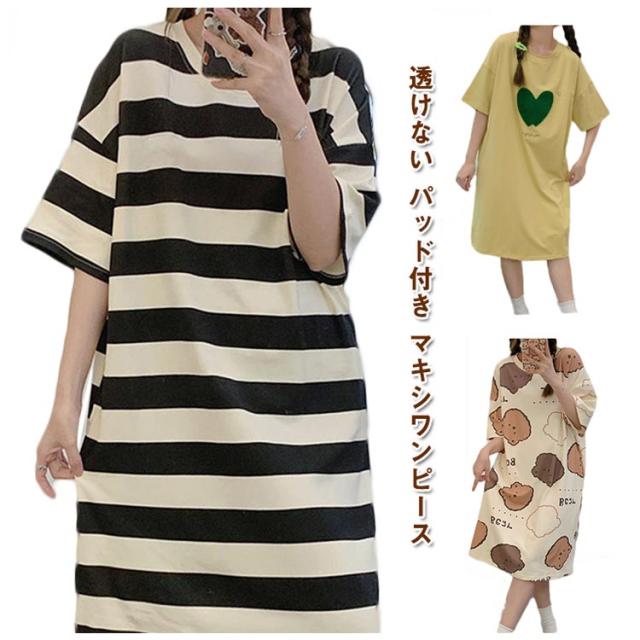 カップ付き ワンピース ロング レディース ボーダー柄 着痩せ ルームウェア パジャマ Aライン 透けない 夏 ネグリジェ 部屋着 寝間着 女性 ストレッチ 通気性 カットソー 涼しい かわいい 吸水性 シンプル 柔らかい