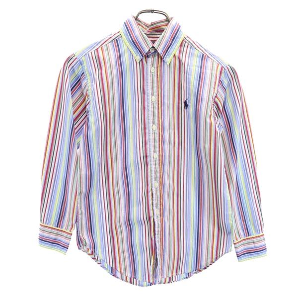 ラルフローレン ストライプ 長袖 ボタンダウンシャツ S(8) RALPH LAUREN ロゴ刺_ キッズ