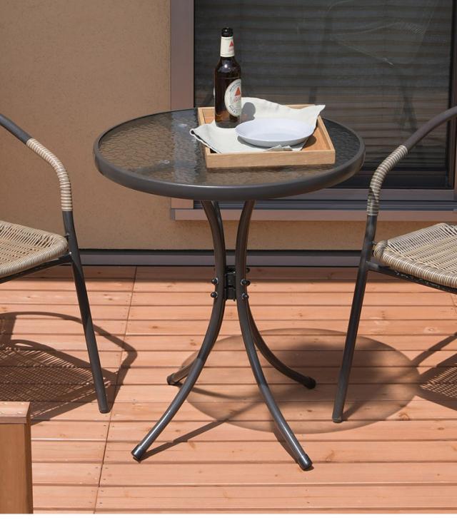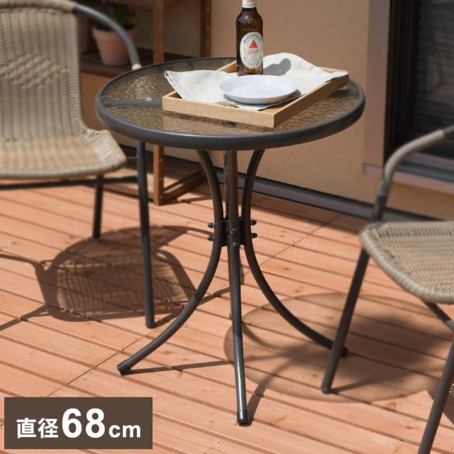 ガラスガーデンテーブル 単品 直径68cm ブラック ガーデンテーブル ガラス ベランダテーブル ベランダ テラス バルコニー ガーデニング ガーデンファニチャー 庭 丸 ラウンドテーブル 円形(代引不可)【送料無料】