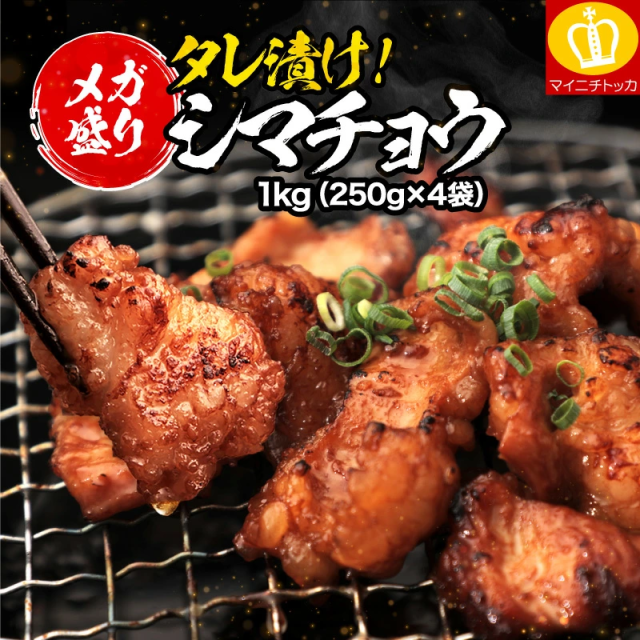 焼肉 厳選 タレ漬け ホルモン シマチョウ 大盛1kg 250g×4袋 送料無料 牛 肉 BBQ バーベキュー やきんく ホルモン焼き たれ漬け