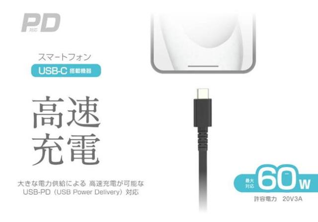 ●USB-PD 最大60W(20V3A)充電器に対応。