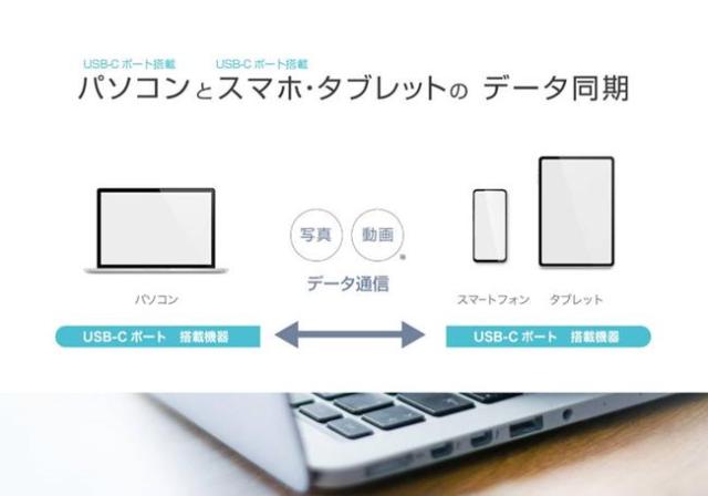 ●USB Type-Cポート搭載のパソコンとUSB Type-Cポート搭載のスマートフォン/タブレット間で、データの相互転送が可能。