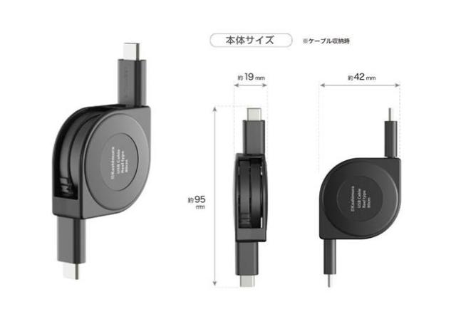 ●コードをスッキリ収納できる巻き取り式USBケーブル。