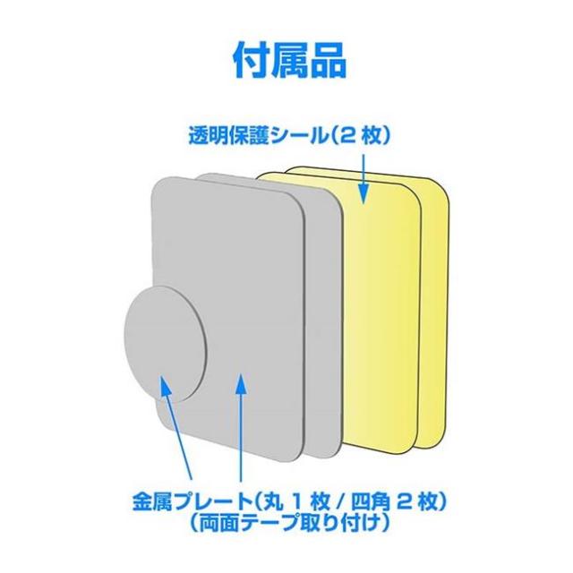 付属品:透明保護シール(2枚)/ 金属プレート(丸1枚 / 四角2枚)(両面テープ貼り付け済み)