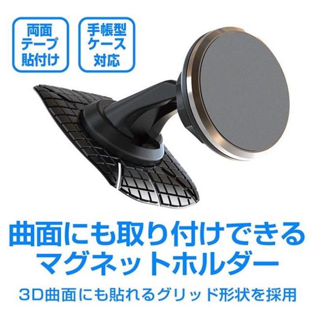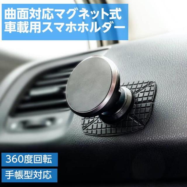 スマホホルダー 車 車載用 マグネットホルダー 磁石 ダッシュボード 曲面貼り付け対応 360度回転 手帳型ケース対応 両面テープ貼り付け