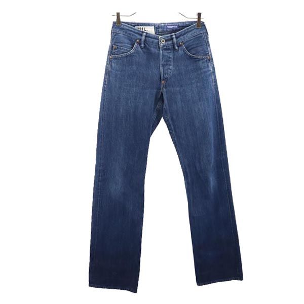 エムエイチエル 日本製 裏リベット ストレートデニムパンツ W26 MHL. MARGARET HOWELL ボタンフライ ジーパン レディース