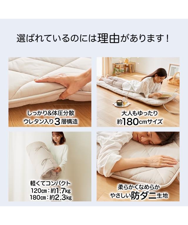 コンパクトに畳める体圧分散ウレタン入りごろ寝マット(布団)高密度防ダニシリーズ