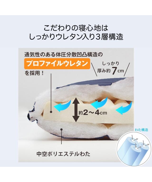 ごろ寝マット 敷布団 寝具 120cm 体圧分散 プロファイル ウレタン 防ダニ コンパクトに畳める 厚手 厚み7cm 70mm 120×65 リビング 長座布団 車中泊 アウトドア ごろ寝クッション ネイビー/ブラウン/グレー ニッセン nissen