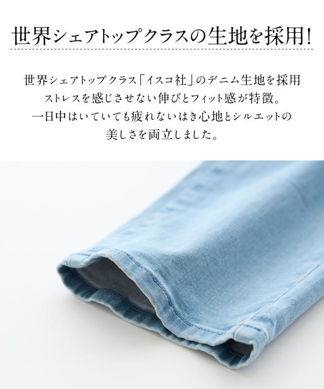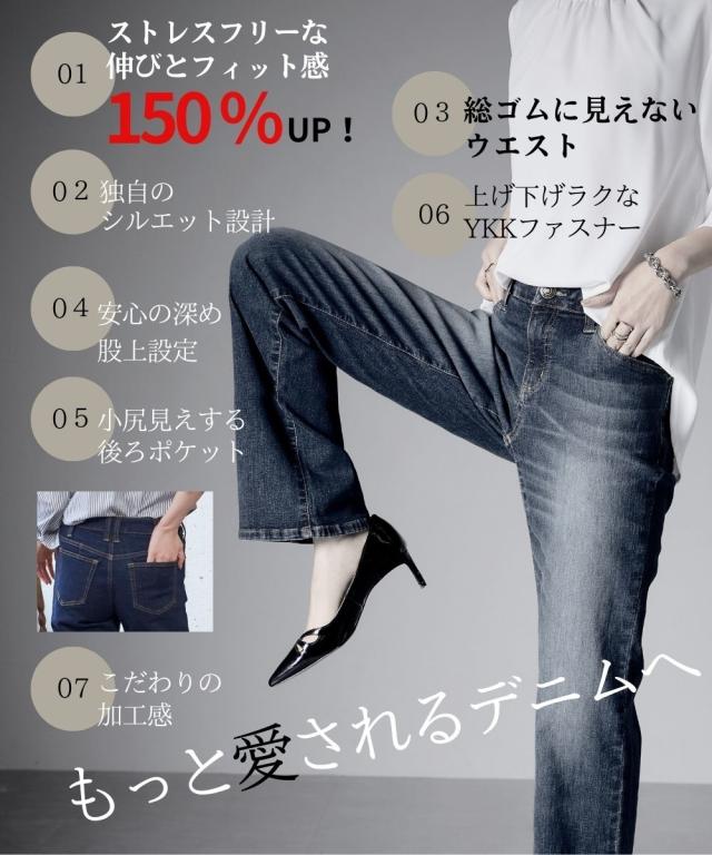 "【(Re:Ripi.365)】 (また戻ってきたくなる) Return(また買いたくなる) Repeatを掛け合わせた造語がブランド名の由来です。いいボトムってもう一枚欲しくなる。 ""365日しあわせ気分をお届けするボトムSHOP"" 毎日はきたくなる。何度でもリピートしたくなる。そんなボトムスになるようにはき心地・快適さ・シルエットに拘って、作り続けていきます。 シリーズ累計販売22万枚突破 。の人気品番を待望のリニューアル 。 。 。 『進化を遂げた すごのびストレッチデニム』 世界シェアトップクラス『イスコ社』のストレスを感じさせない伸びとフィット感が特徴デニム生地を採用 お客様のお声を反映してサイズ・仕様も改善しウエストへの窮屈感・立っても座ってもノンストレスに 。 快適な穿き心地がUPしました。 サイズ展開も範囲表示に変更しサイズが選びやすくなりました。 スマイルランドが誇る自信の商品です。迷った場合はこれで決まり 。オールシーズン使える商品だからこそ厚み・ストレッチ感・サイズ感にもしっかりこだわりました。 大きいサイズのお客様に合わせてぴったり穿ける喜びをお届けしたい一心で改善・試作を続けたデニムです。 ■デザイン ゆとりがあるのにもたつかない 太すぎず