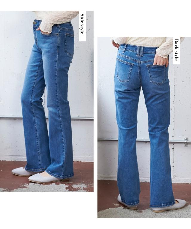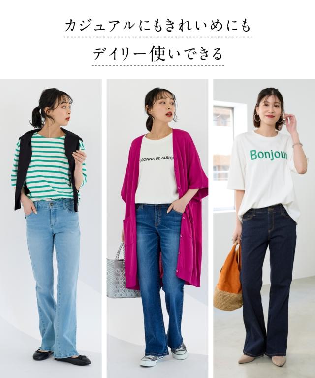 フレアパンツ ブーツカットパンツ 大きいサイズ レディース すごのび ストレッチ デニム ブーツ カット パンツ ゆったり太もも 股下78cm ニッセン nissen