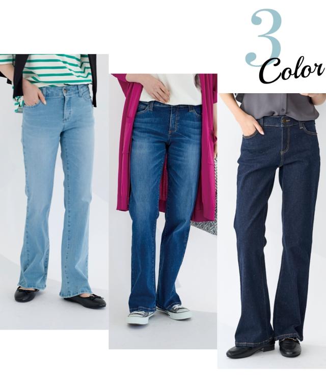 大きいサイズすごのびストレッチデニムブーツカットパンツ(ゆったり太もも)(股下78cm)