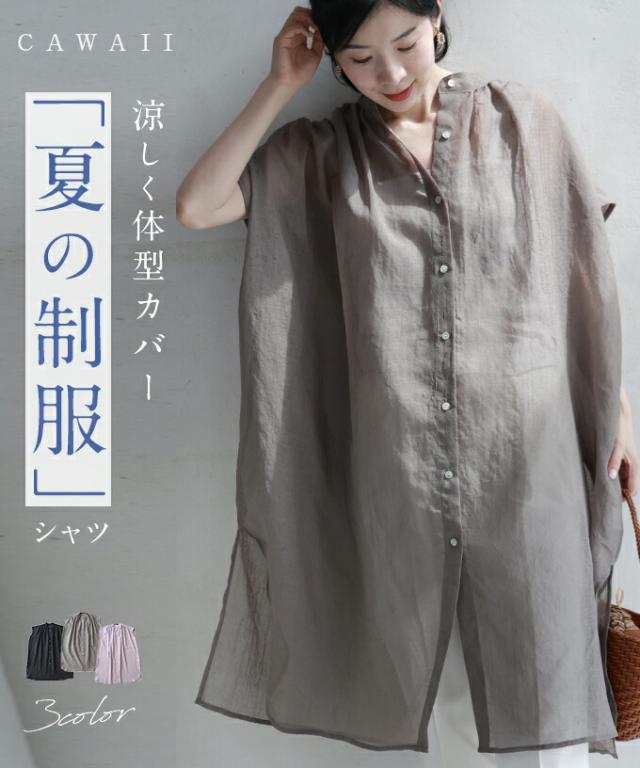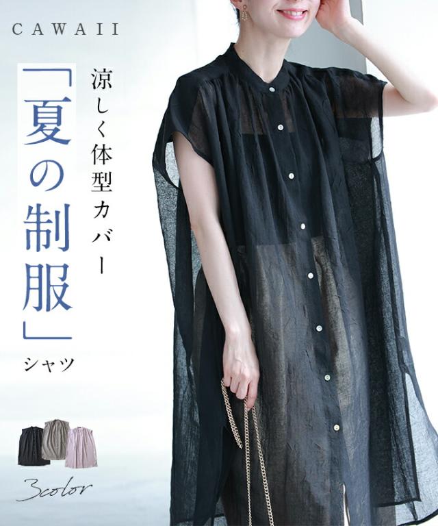 再入荷6月5日 「夏の制服」あと1枚ほしい時に、着るチュニック cawaii fzp00167od 羽織り 薄手 シワ加工 オシャレ 個性的 大人可愛い エレガント 春 夏 体型カバー レディース ファッション ミセス 30代 40代