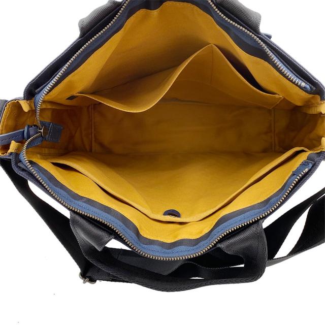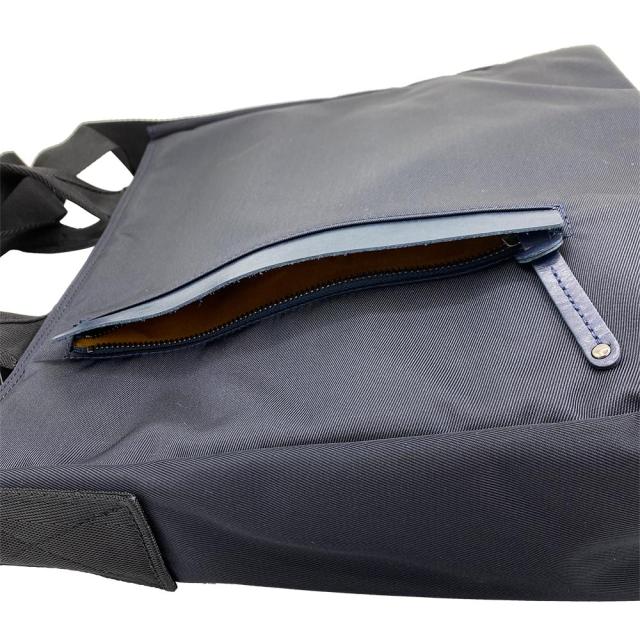 Bluffpop ブラフポップ NW スクエア 2way ショルダーバッグは、紺系ナイロン素材とレザーのコンビを使用。