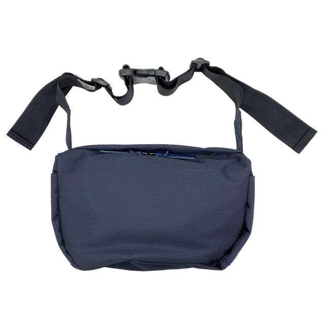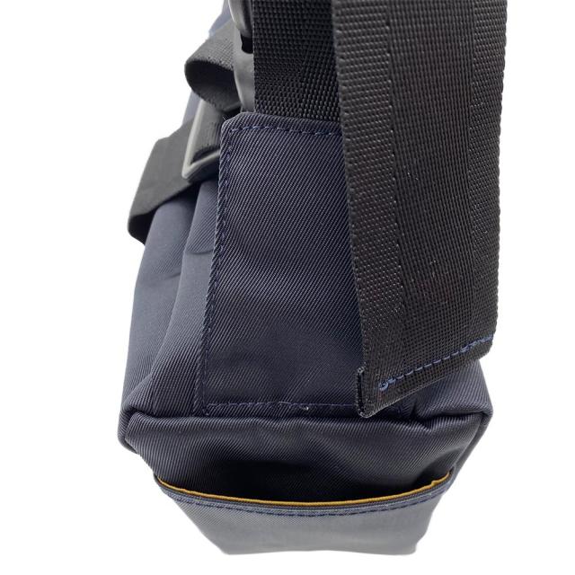 Bluffpop ブラフポップ NW ショルダーバッグは、本体生地の紺系ナイロン素材は防弾チョッキ内生地にも使われるタフネス素材を使用。