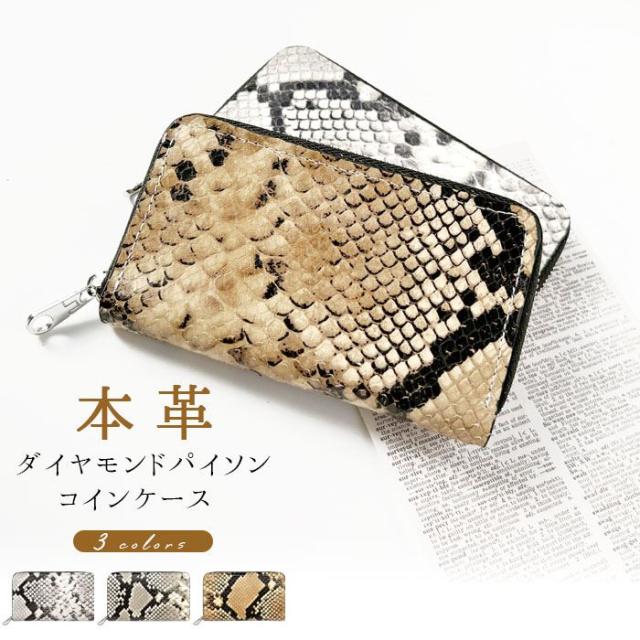 コインケース ダイヤモンド パイソン ヘビ柄 レディース 本革 メンズ 小物入れ 革 財布 小銭入れ ケース 女性 カード入れ ファスナー レザー