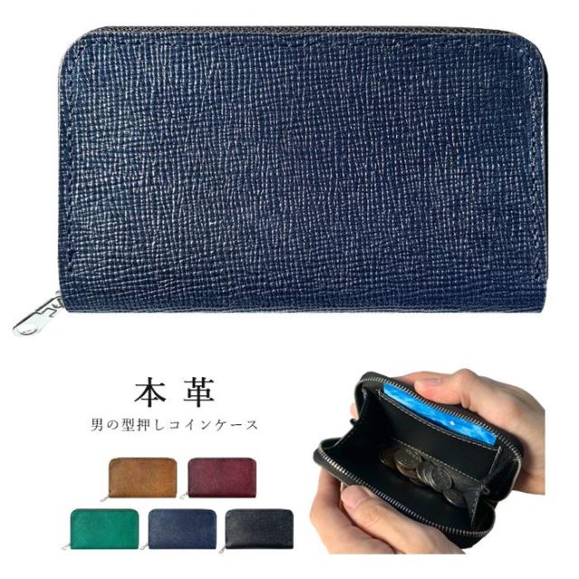 コインケース 小物入れ ポーチ 革 高級 ラウンドファスナー 型押し レザー 本革 牛革 コンパクト ケース 財布 メンズ 小銭入れ 男の型押し