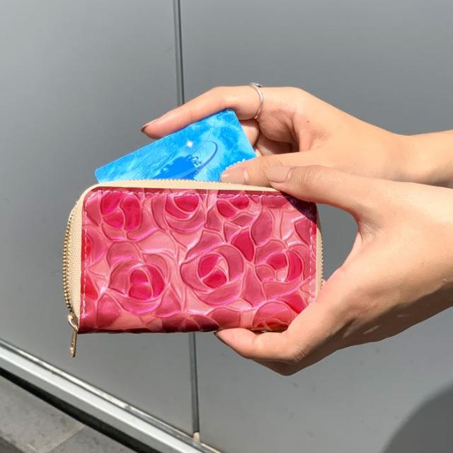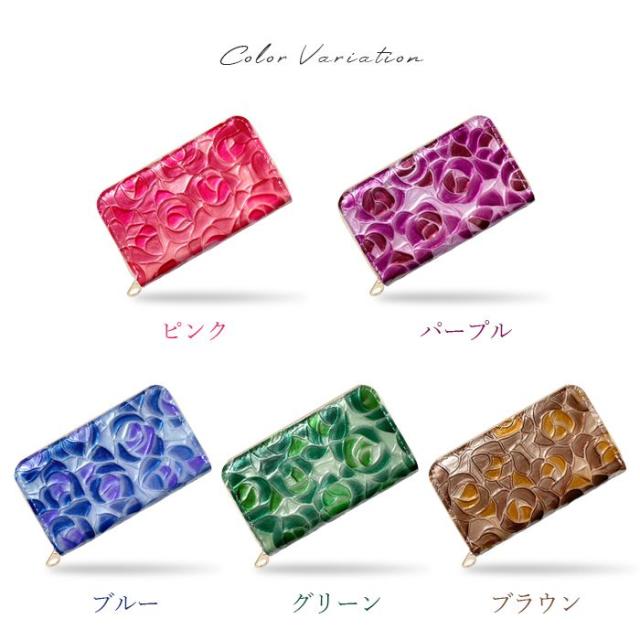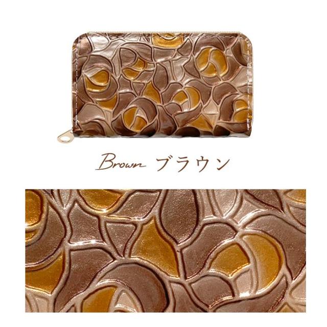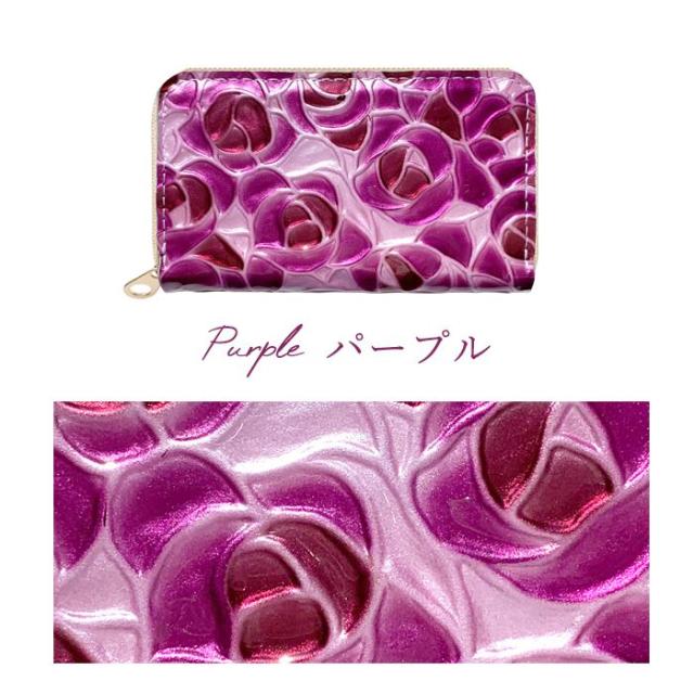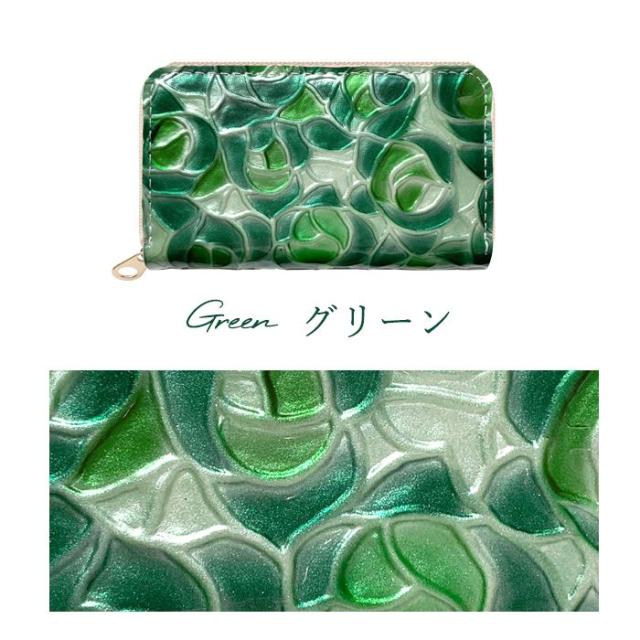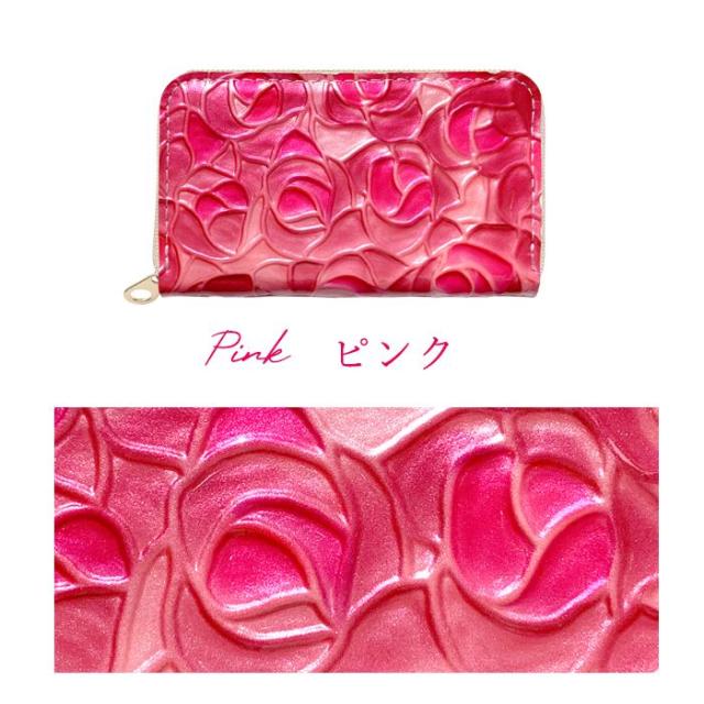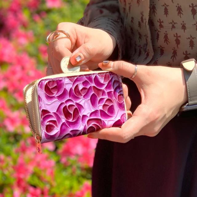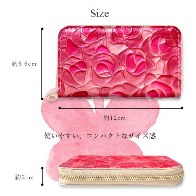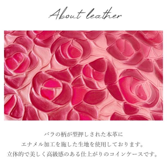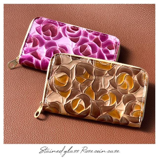 ケース 女性 ファスナー付き ローズ 薔薇 レザー コインケース エナメル加工 本革 型押し ステンドグラス 小銭入れ レディース 革 カード入れ