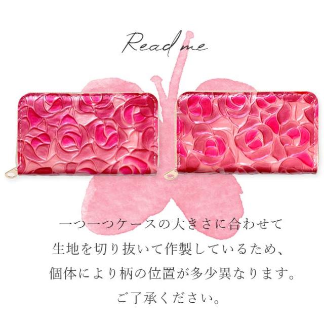 バラの柄が型押しされた本革にエナメル加工を施した生地を使用しております。