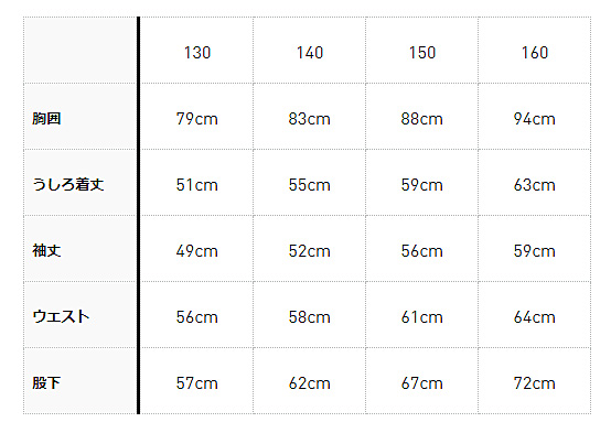サイズ:身長 / チェスト / ウエスト