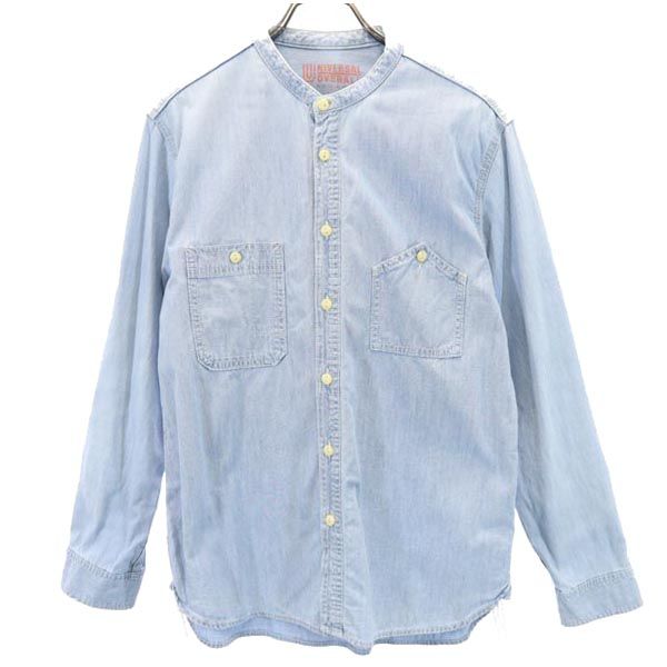 ユニバーサルオーバーオール 長袖 バンドカラー デニムシャツ M ブルー UNIVERSAL OVERALL メンズ