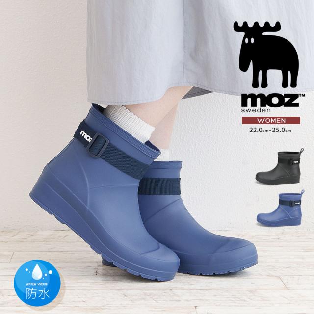 モズ moz レインブーツ レディース ショート 防水 長靴 レディース おしゃれ シンプル 女性用 雨靴 大人 履きやすい 歩きやすい 防滑 ローヒール ウェッジソール ショートブーツ 雨 雪 ジュニア 女の子 黒 ブラック ネイビー 8041