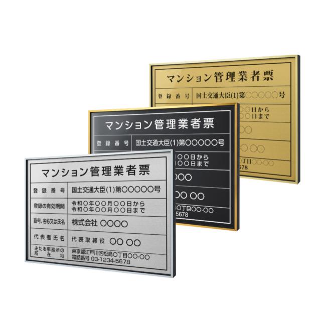 令和6年改正【マンション管理業者票】看板(高級感抜群)選べる3フレーム+ステンレス板5タイプ 事務所用 標識 サイン 許可看板 l0736-ms