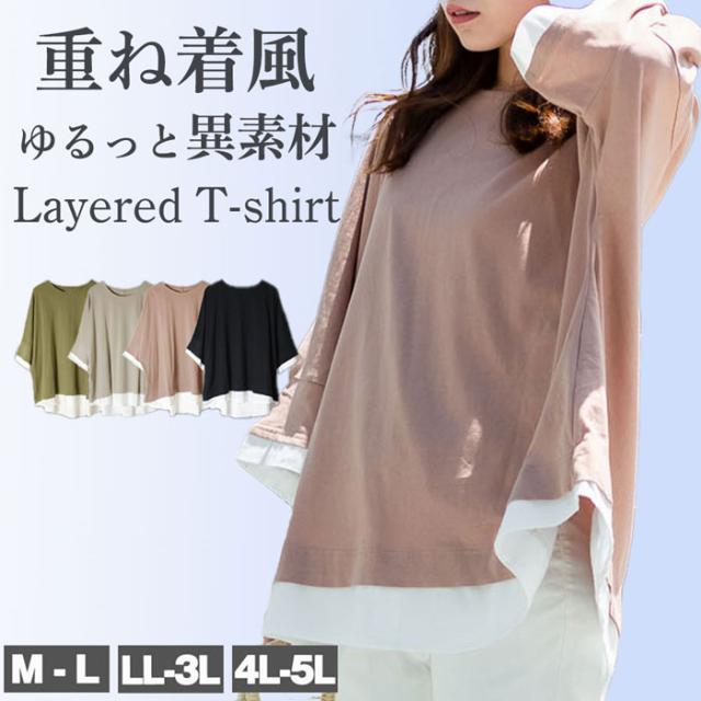 【重ね着風】綿100%ゆるっと異素材レイヤードTシャツ