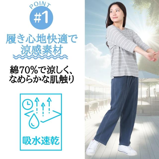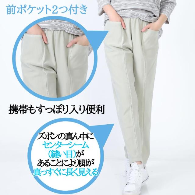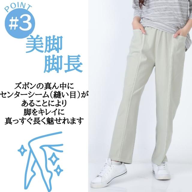 素材 綿 70%ポリエステル 25%ポリウレタン 5%特徴 ズボンの真ん中にセンターシーム(縫い目)があることにより真っすぐに長く見えます。後ろ側に山ハギがあるのでお尻回りもゆったりしています。製品染め(後染め加工)のびのびストレッチ 10分丈注意事項 ■商品の撮影には最大限注意を払っておりますが、閲覧時のモニター環境によりましては実際の商品と若干違うお色味に映ることもございます。