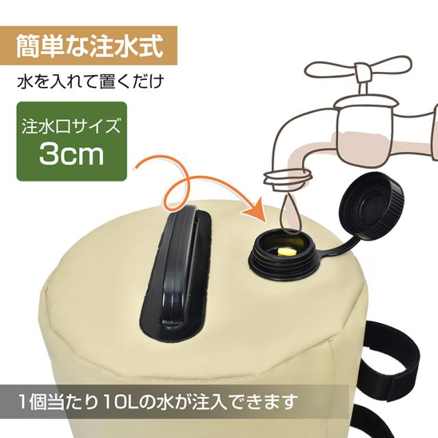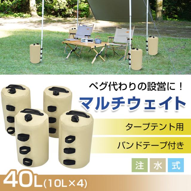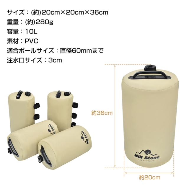 タープテント用マルチウェイト バンドテープ付き 10L 4個入 テントウェイト ウェイト タンク 重し コンパクト ウォータータンク 注水 od641