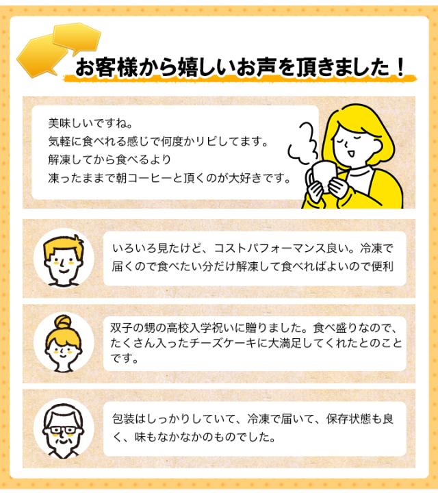 訳あり無選別の為、大きさが不揃い、端の部分の切り口が荒いなどの場合がありますが、味と原料にはこだわった逸品!! クリーミーでずっしりとした満足感、口の中をリセットするレモンの味。 濃厚なチーズをしっとりと、ほんのり甘く香ばしいビスケット生地がクリームチーズを支えます。
