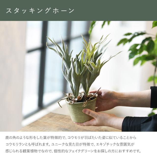 スタッキングホーン ポット GLA-1364-GR 観葉植物 フェイクグリーン インテリアグリーン リラックス 癒し 造花 北欧 ンテリア 鉢植 ボタニカル グリーンディスプレイ リビング 玄関 カフェ 店舗