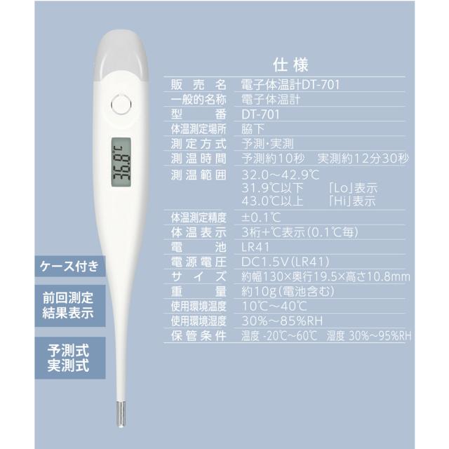 【送料無料】10秒測定 スピード検温 NOZOMI 電子体温計 DT-701 医療機器認証 脇下 検温 予測式 実測式 1年保証 管理医療機器 収納ケース付き 子供 大人 早い