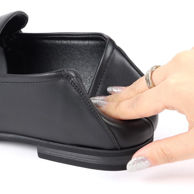 つま先のデザインはソフトなスクエアトゥで足元すっきり。