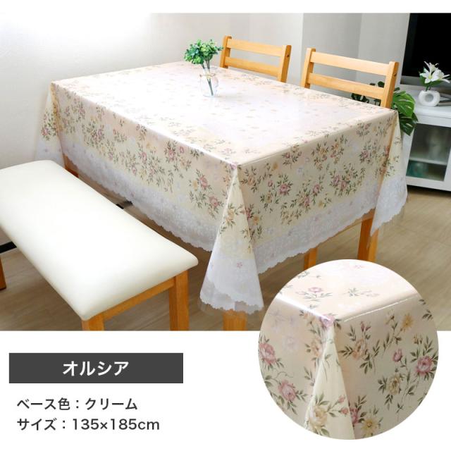 テーブルクロス 防水 ビニール レース120×150cm 135×185cm 4人掛け 6人掛け 1枚物 既製サイズ 家庭用 業務用 クロス 防汚 撥水 食卓カバー テーブルカバー ダイニング パーティークロス PVC製柄 かわいい 花柄 明和グラビア 日本製 MGプリントレース