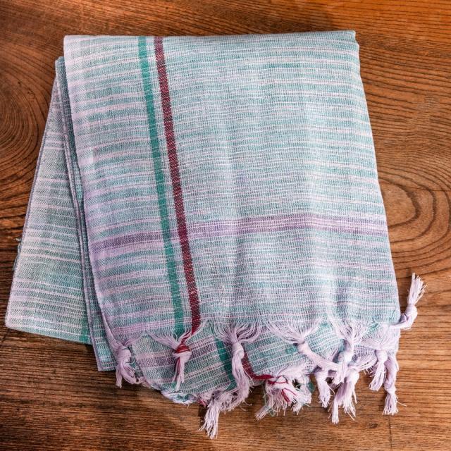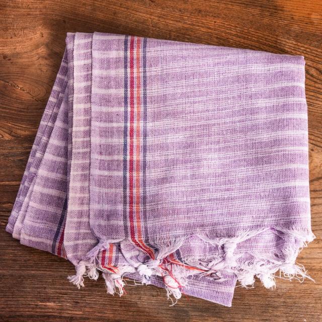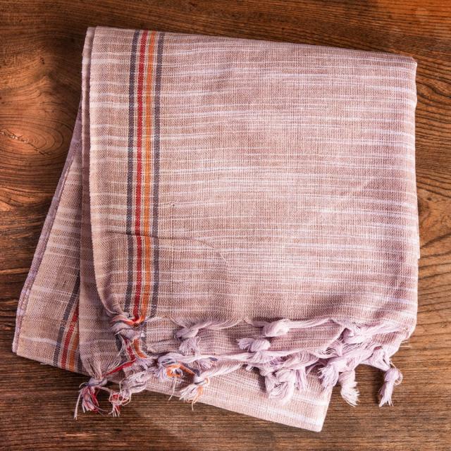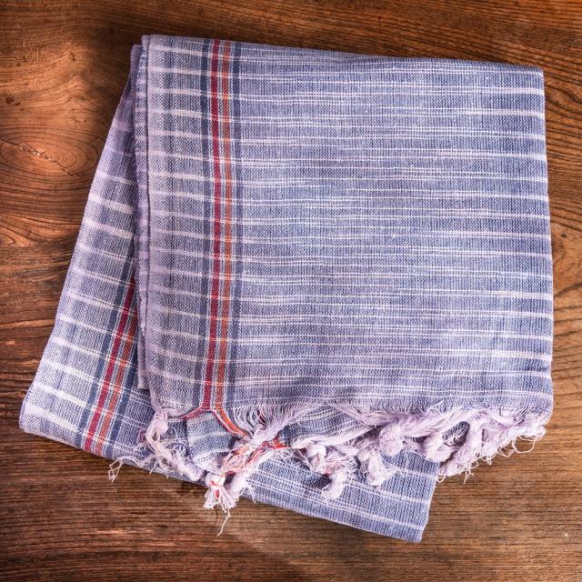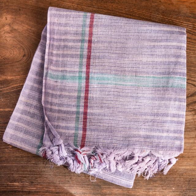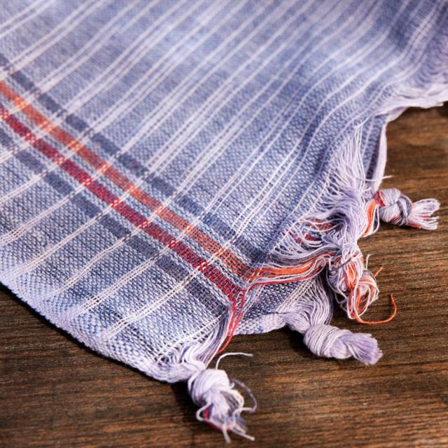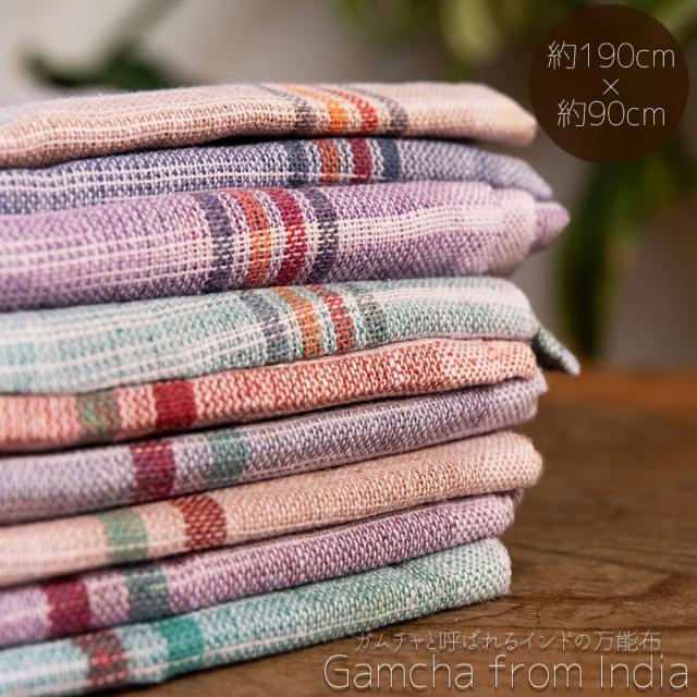 インドの生活感あふれる布、ガムチャと呼ばれる万能布で日本で言う手ぬぐいのような布です。シンプルなコットンでざっくりと編まれた布は素朴で可愛く、様々な用途にお使いいただけます。