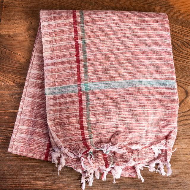 インドの生活感あふれる布、ガムチャと呼ばれる万能布で日本で言う手ぬぐいのような布です。シンプルでざっくりと編まれた鮮やかなチェック柄が可愛く、様々な用途にお使いいただけます。 現地では、祭壇に使用したり、頭に巻いたり、手拭きにしたり。色やサイズに合わせて何にでも◎ざっくりと編まれているから速乾性にも優れており、使えば使うほど、洗えば洗うほど生地が馴染んで柔らかくなってきます。お皿を拭いたり、目隠し布やランチョンマットのように広げて使用しても◎また、大きめサイズならクーラーの風よけや日焼け防止にも使用できます。
