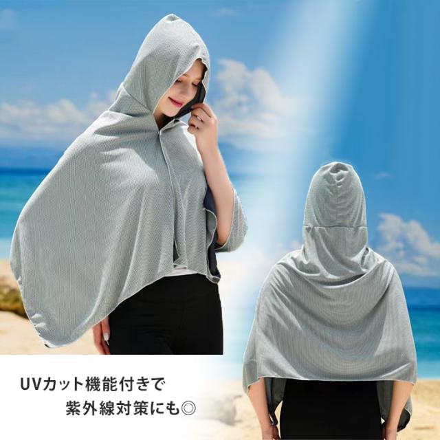 新作 ポンチョ パーカー レディース メンズ 夏 冷感 冷却 薄手 軽量 UV 通気性 速乾 日よけ 熱中症対策 涼しい ひんやり 運動 羽織り