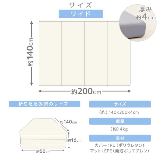 | サイズ | (約)140×200×4cm 折りたたみ時:(約)140×50×16cm |