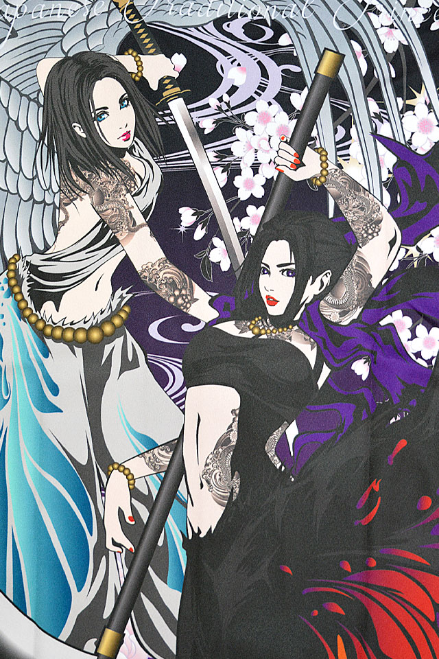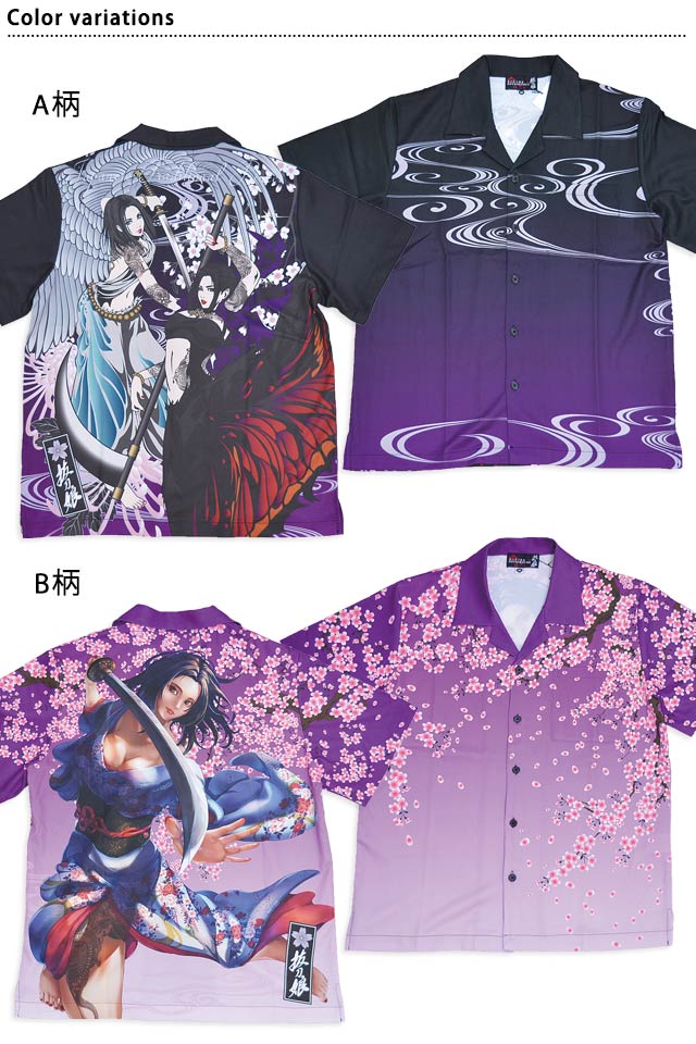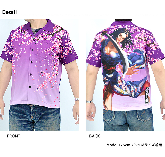 絡繰魂の姉妹ブランドとして誕生した、従来の和柄から抜け出し、和の持つ美しさを融合させた【抜刀娘】から「抜刀娘 娘のグラデーションシャツ(242887)」のご紹介です。 夏にぴったりの開襟アロハシャツが登場! 今回は二種類の柄からお選び頂くことが出来ます。 背中には美しい娘達の姿をダイナミックにプリント。 ボディーは、てろんとした肌触りのポリエステル生地です。 ボタンには小振りでナチュラルな素材感のものを採用。 | |||||||||||||||||||||||||