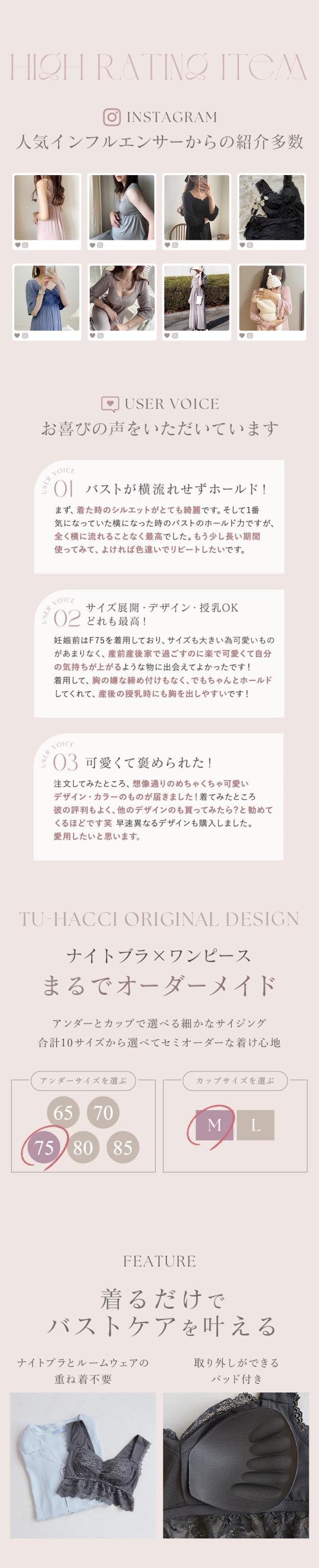 - 届いて直ぐ、お風呂に入って体を綺麗にして、早速、着て見ました!凄く胸と脇が、楽で、良く眠れました。ありがとうございます。