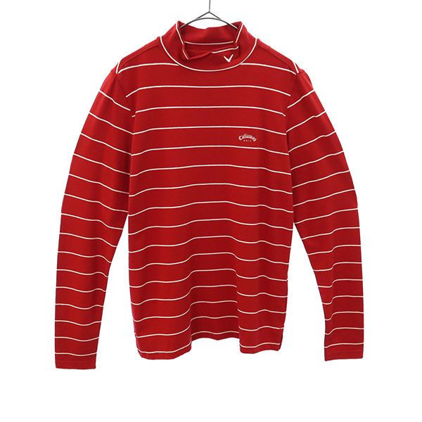 キャロウェイ ボーダー ゴルフ 長袖 ハイネック Tシャツ M レッド Callaway レディース