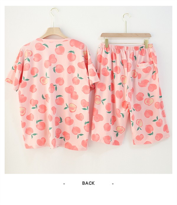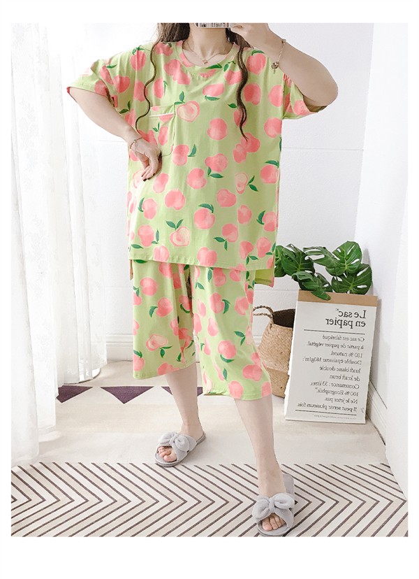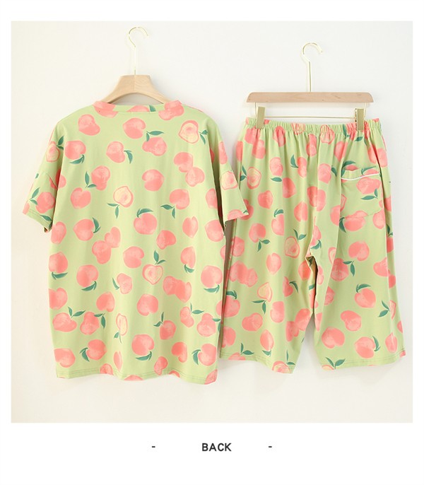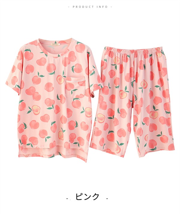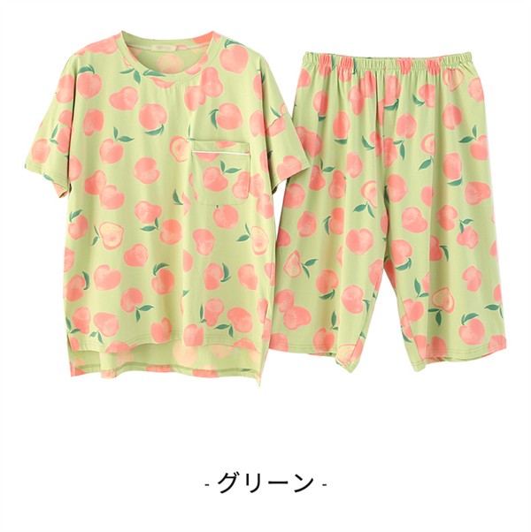 大きいサイズ パジャマ レディース 綿100% 桃柄 ぽっちゃり 半袖 春 夏 上下セット 大人用 ルームウェア ピンク グリーン コットン 可愛い かわいい マタニティ 入院 産後 部屋着 母の日 寝間着 サマーパジャマ おしゃれ 韓国風 お家時間 ゆったり リラックス